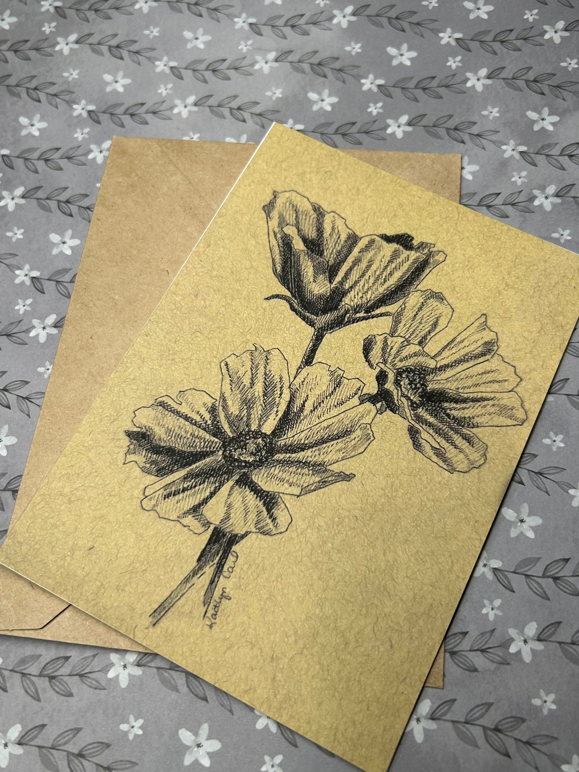 This pack of a dozen cards features 12 different floral pen drawing designs. Each is printed on high-quality card stock, and comes with a kraft paper envelope. The inside of each card is blank so it can be completely personalized for any occasion.