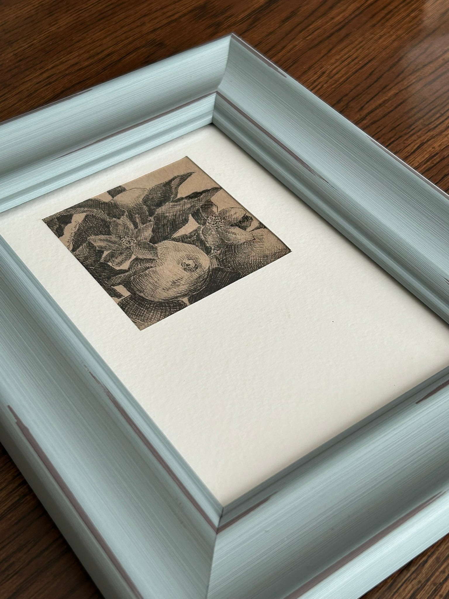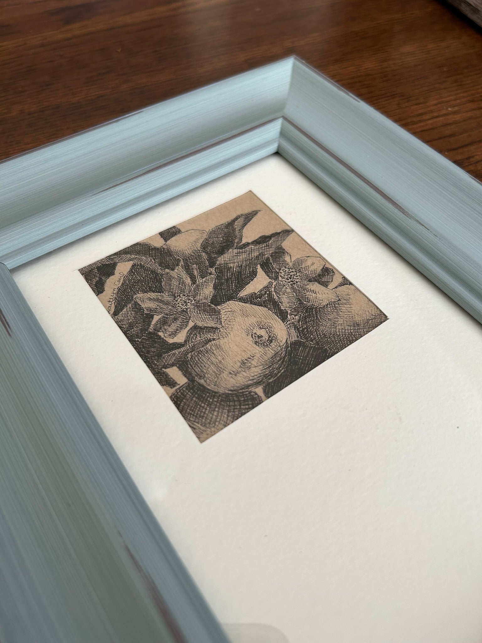 This little pen drawing is 3x3”, and comes matted, framed, and ready to display! There’s a lot of character to bring into your space with this floral mini. It could even be said this cutie is “small but mighty!”