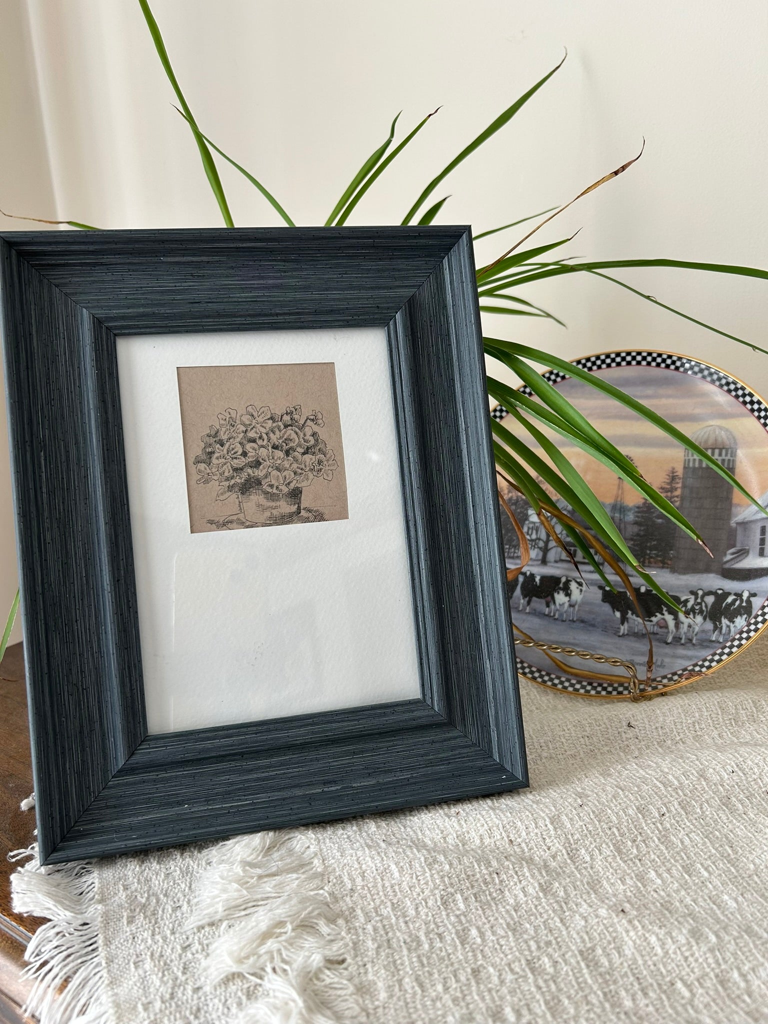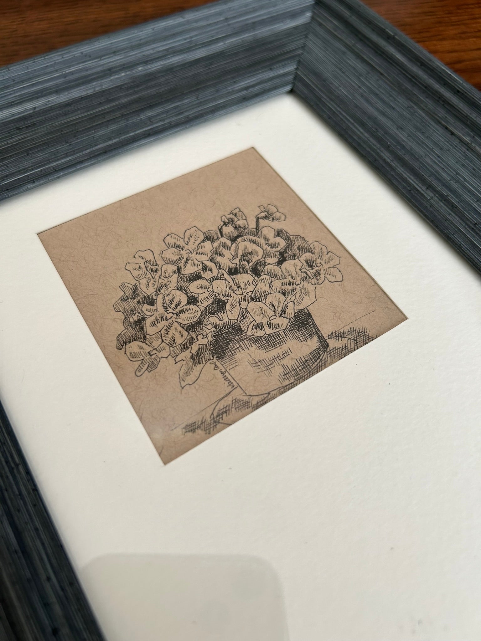 This little pen drawing is 3x3”, and comes matted, framed, and ready to display! There’s a lot of character to bring into your space with this floral mini. It could even be said this cutie is “small but mighty!”